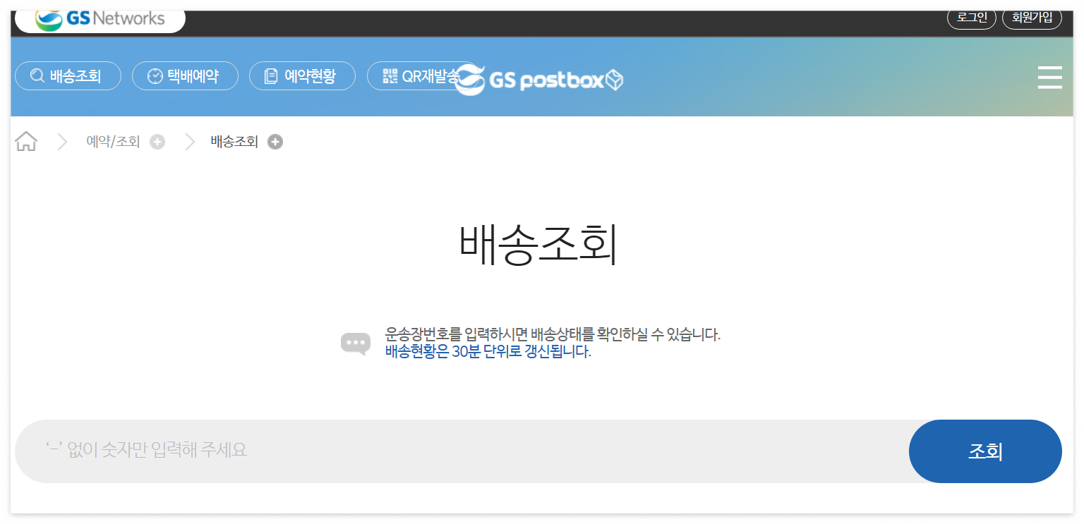 - '우리동네GS' 앱 또는 GS Postbox 홈페이지/앱에서 운송장 번호로 조회