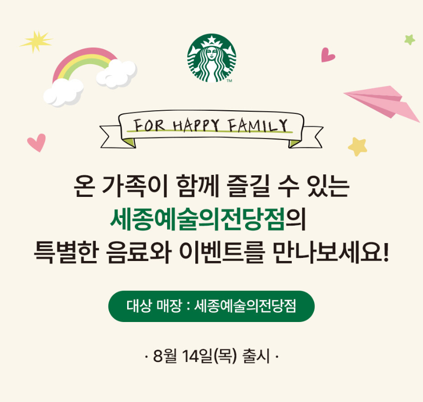 전국 이벤트와는 별개로, 국내 최초 '가족 친화 특화 매장'인 스타벅스 세종예술의전당점에서는 더욱 특별한 이벤트가 진행됩니다.